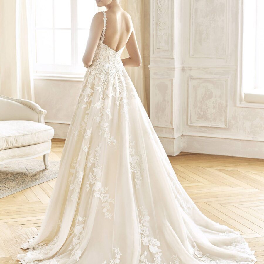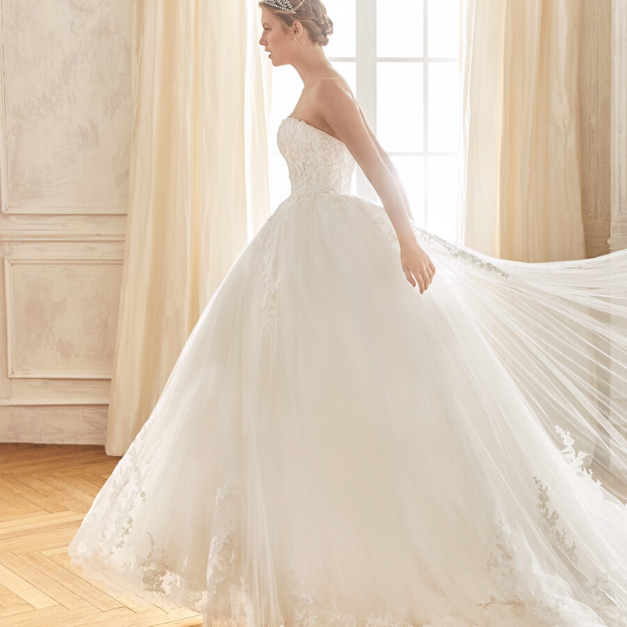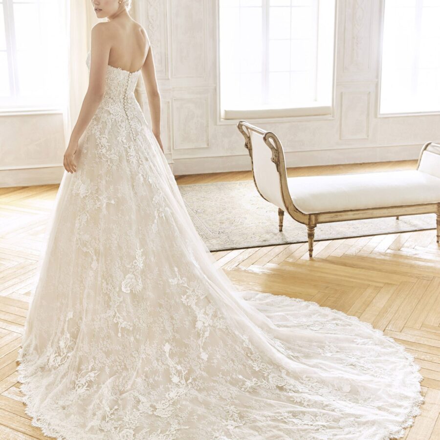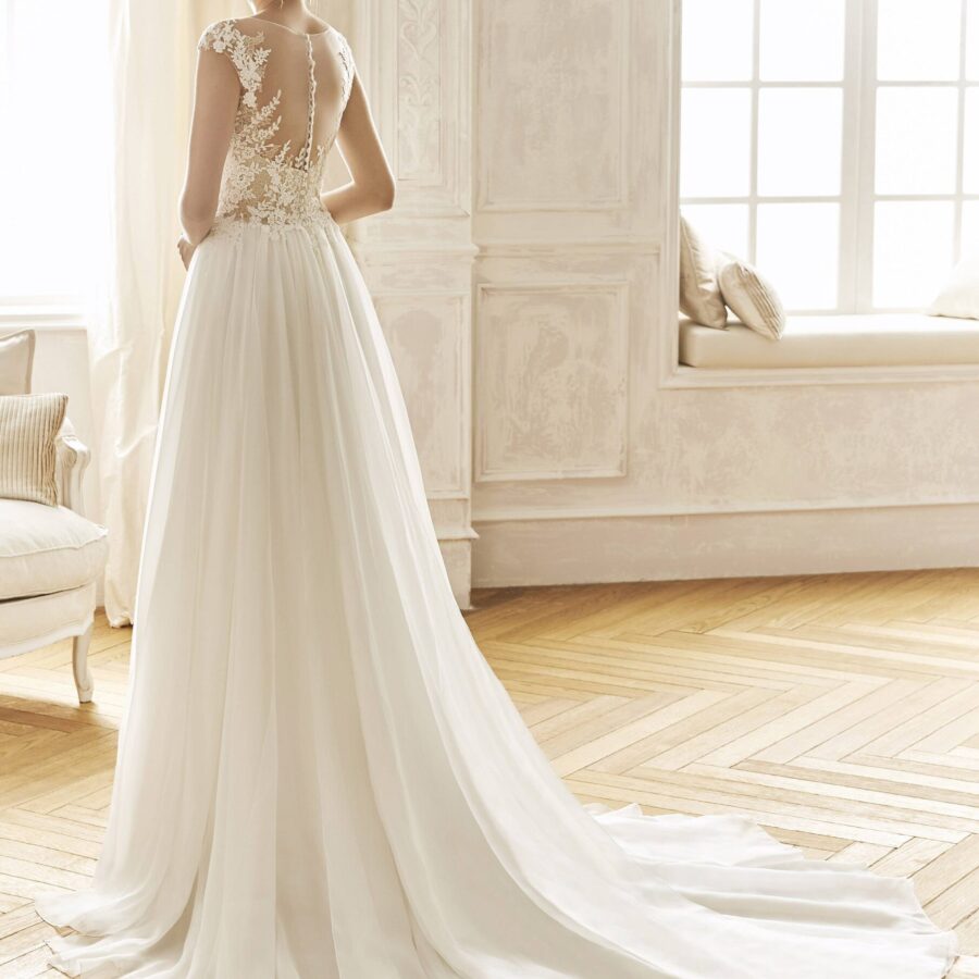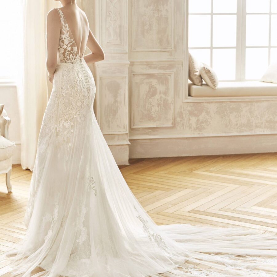 $1.00La robe de mariée PALMA impressionne par son chic et sa grandeur. Cette création originale rend la mariée unique. Avec sa coupe sirène composée de dentelles et sa surjupe en tulle, cette robe taille haute donne un effet double look. Le bustier à col montant et le dos à transparences ajoutent beaucoup de sensualité, en harmonie avec l’ouverture centrale de la jupe, pour faire rayonner la mariée le jour J.