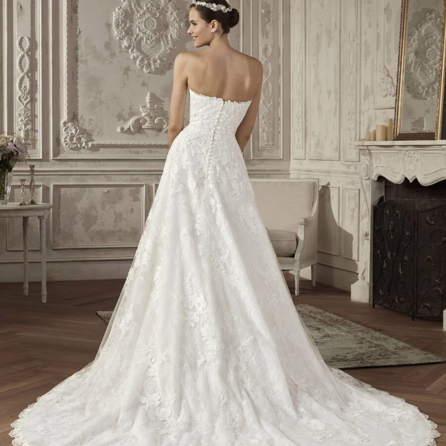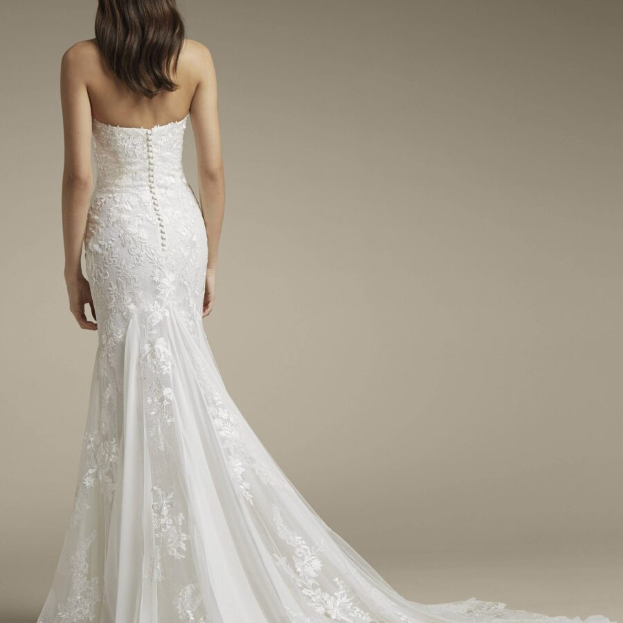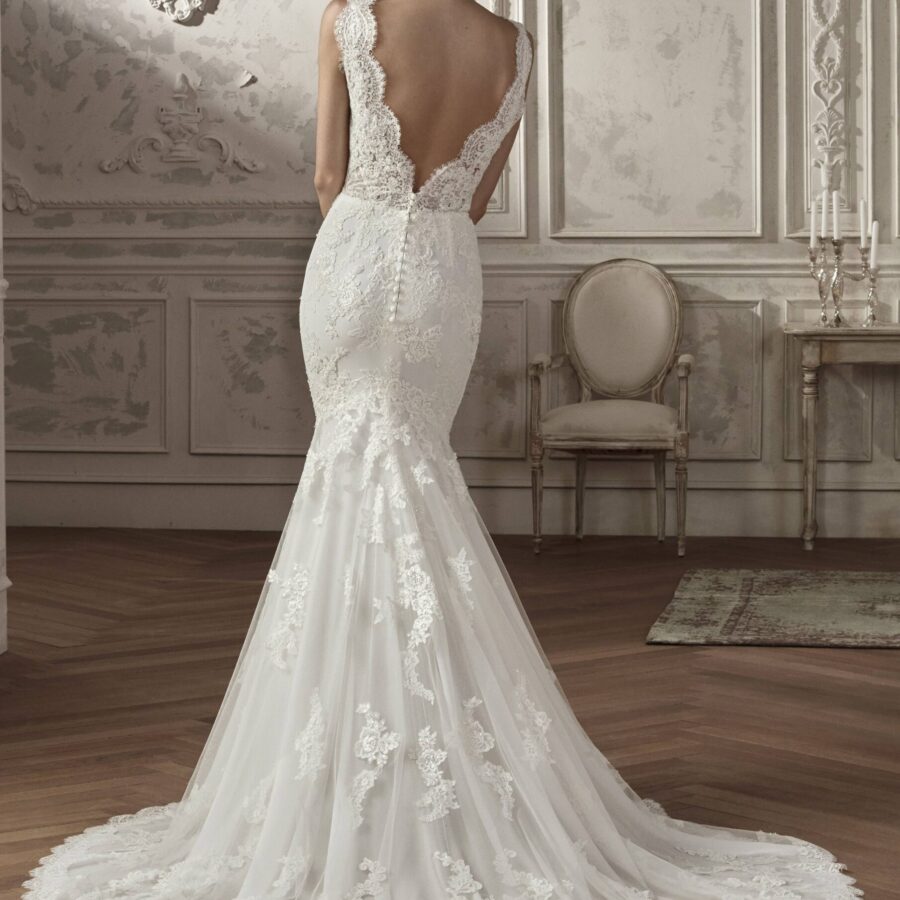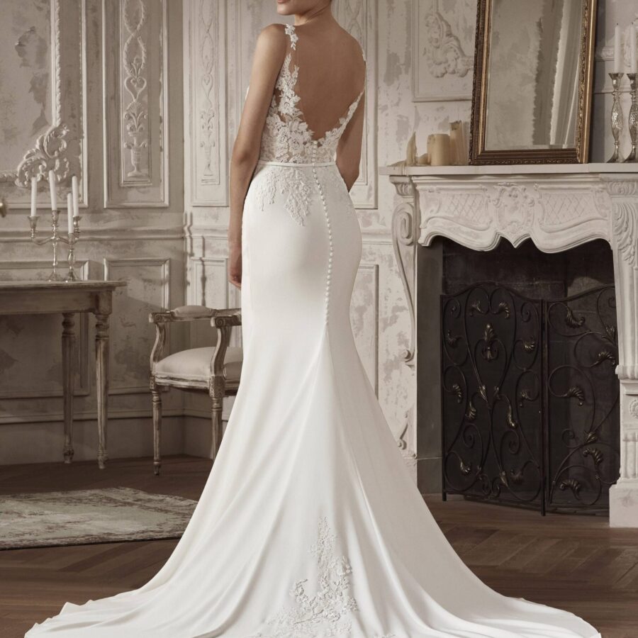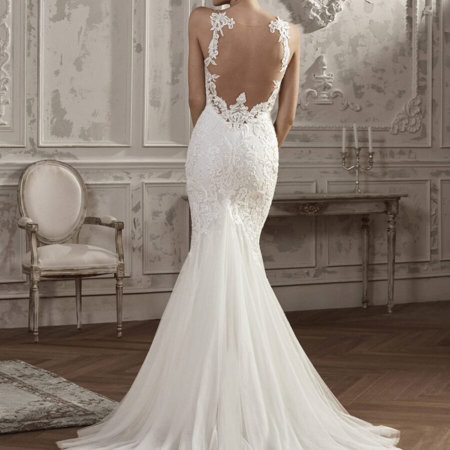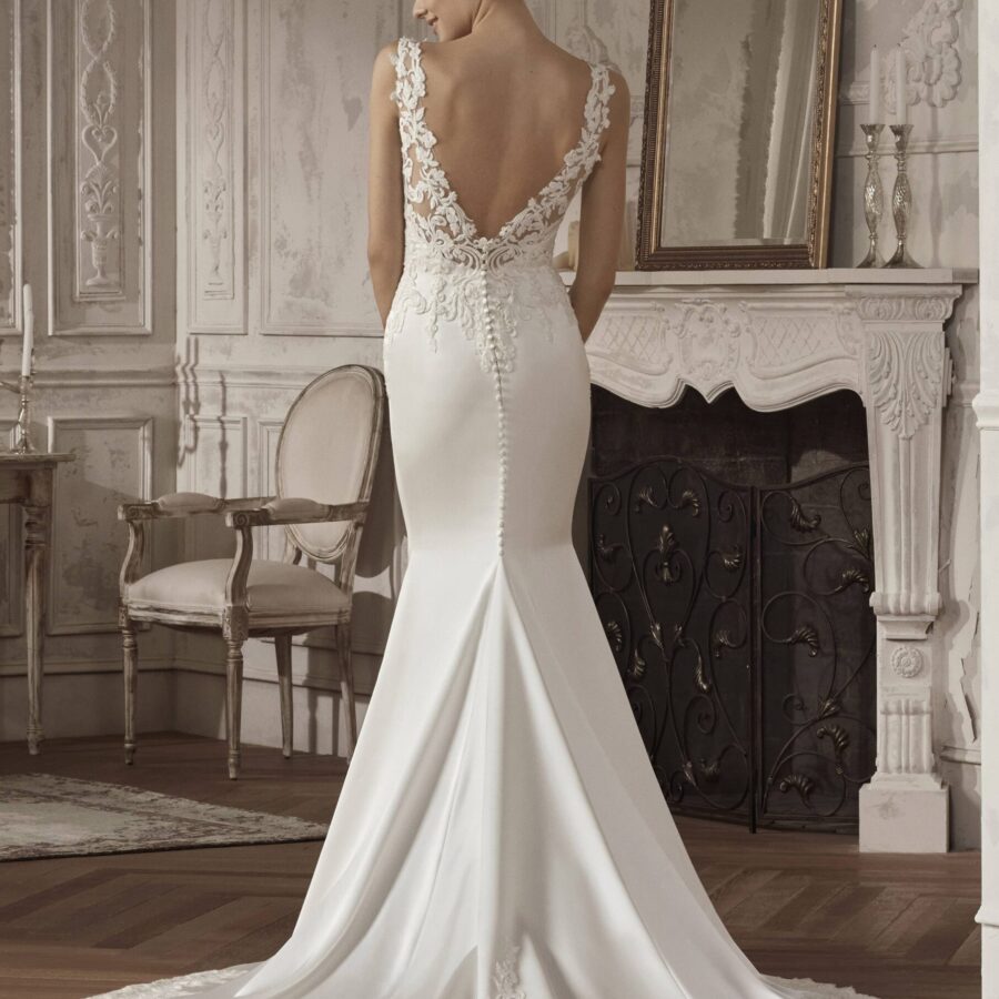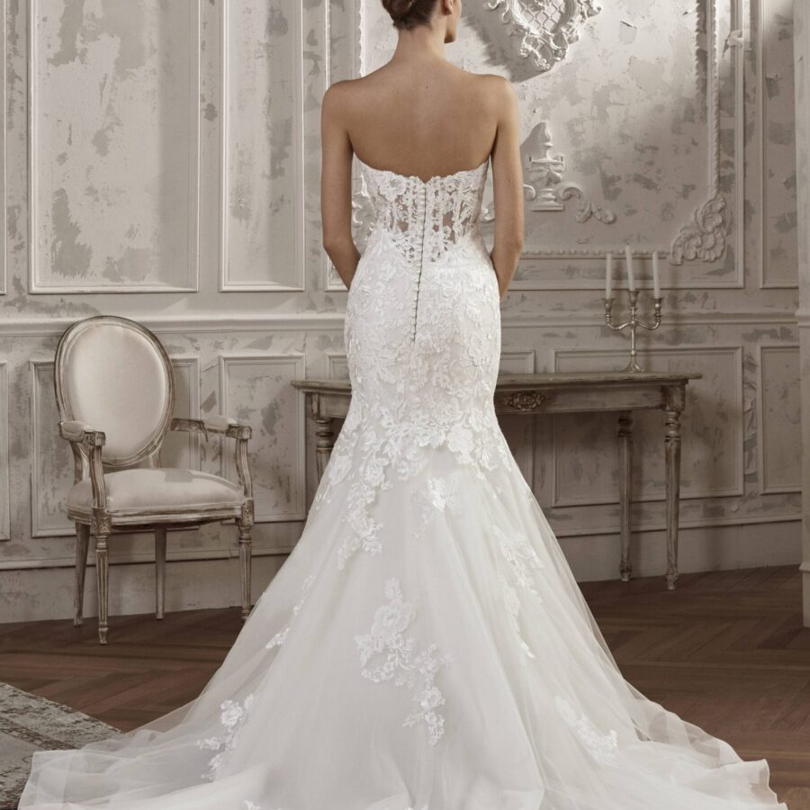 $1.00La robe de mariée AGARA est un modèle confectionné sur-mesure pour toutes celles qui recherchent l’originalité et à se démarquer pour un jour d’exception. Avec sa coupe sirène et le bustier ouvert par un décolleté en V, incrusté de pierreries fines, cette robe se démarque des autres par l’effet de légèreté qui donne une allure…