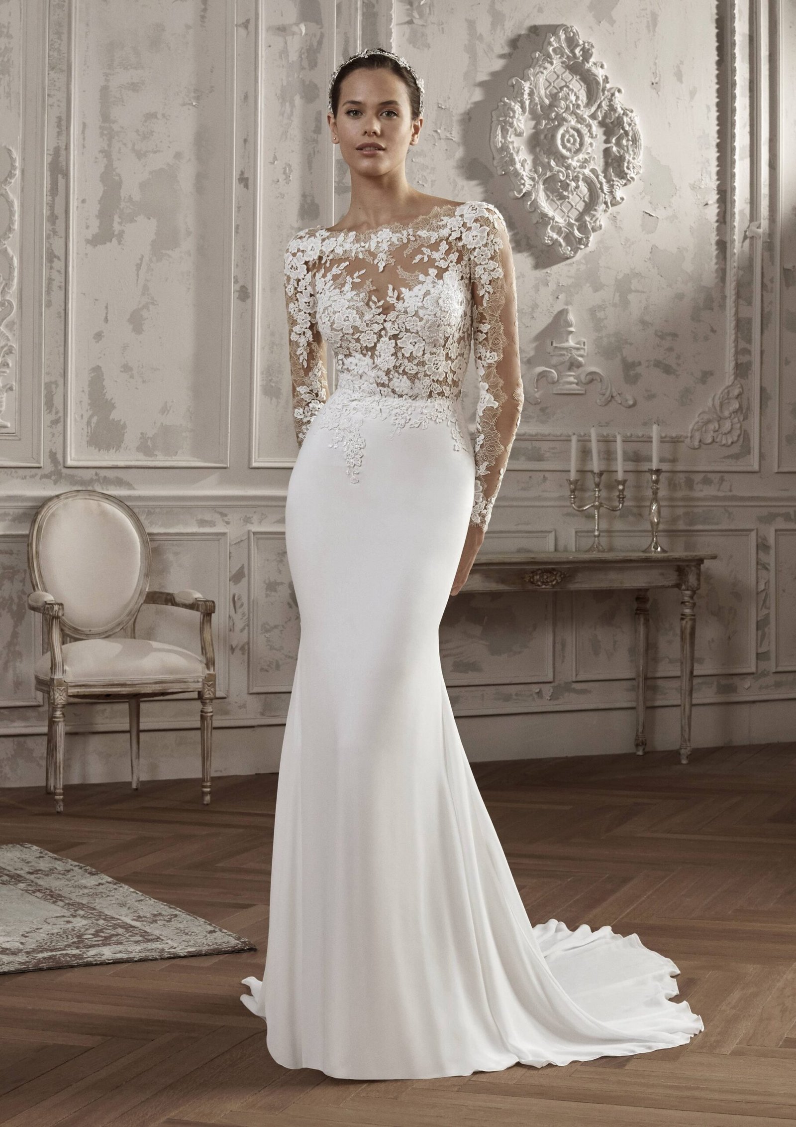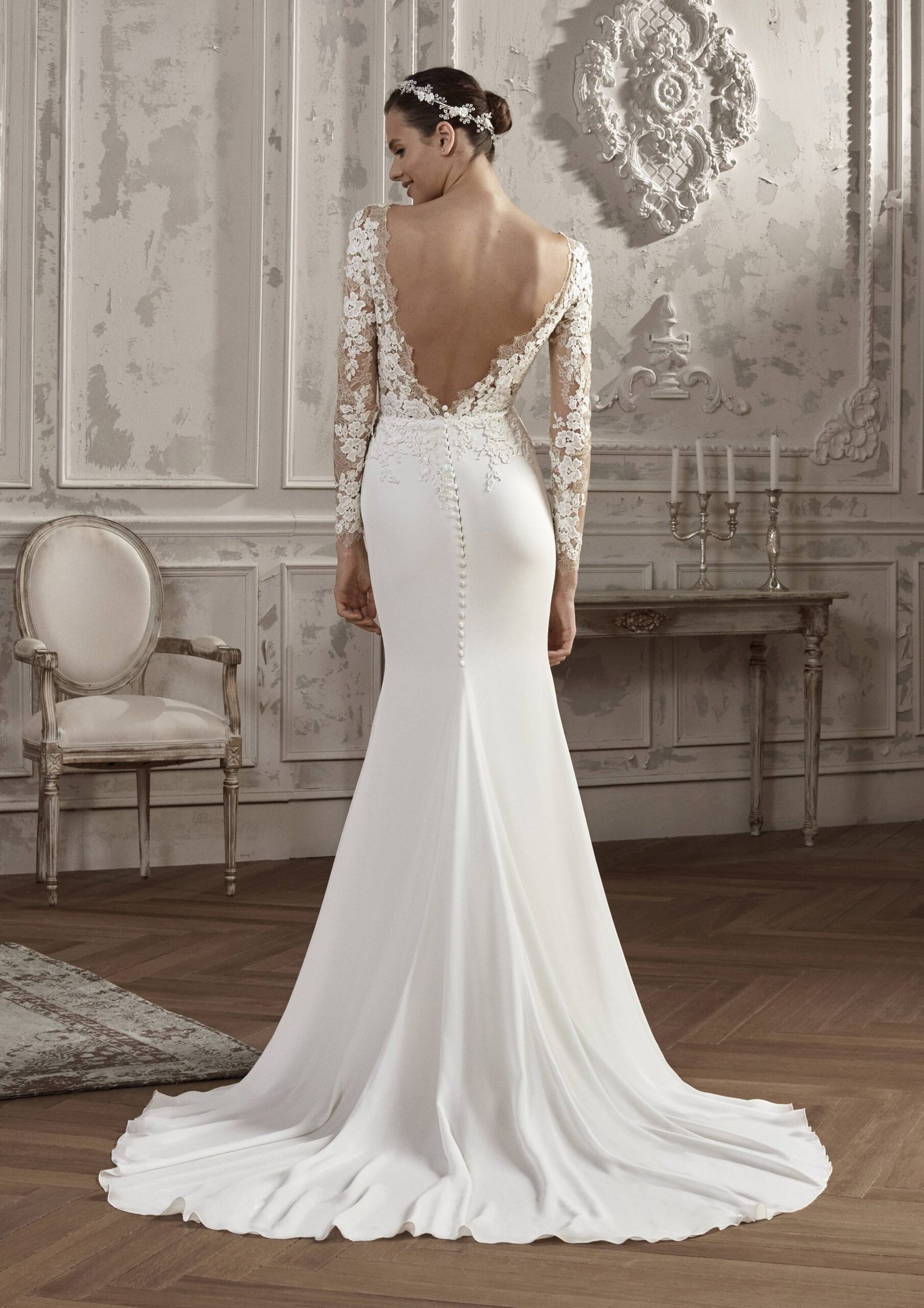 La robe de mariée ALCIRA est une robe princesse inédite offrant un véritable volume par une traîne prononcée. Elle se fond parfaitement à la silhouette de la mariée pour celles qui recherchent de la féminité, et le contraste entre la soie douce et la dentelle amène un réel charme pour une cérémonie où madame sera le centre des attentions. Le dos nu prononcé ajoute une vraie touche de sensualité qui ne laissera pas les convives indifférents.