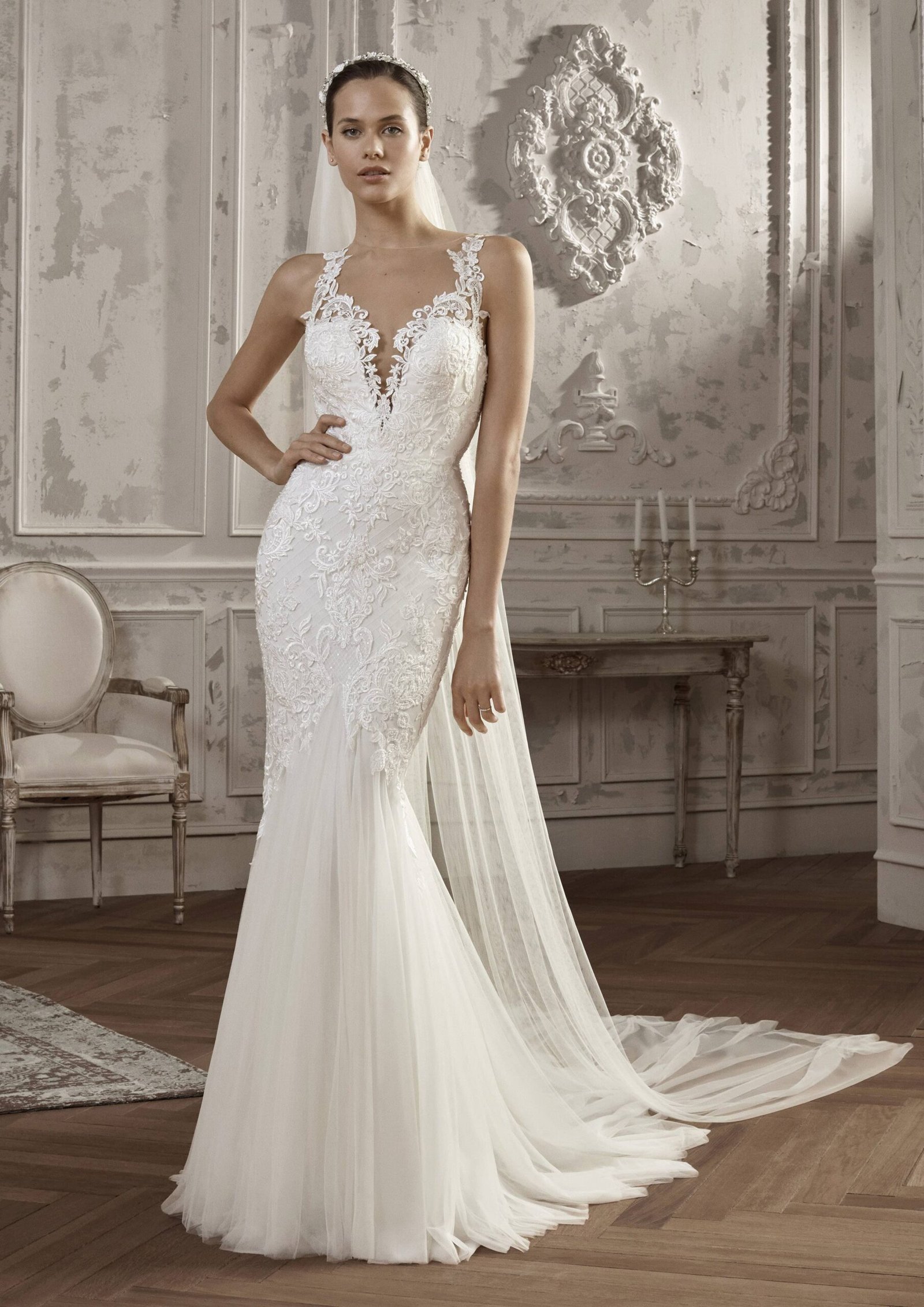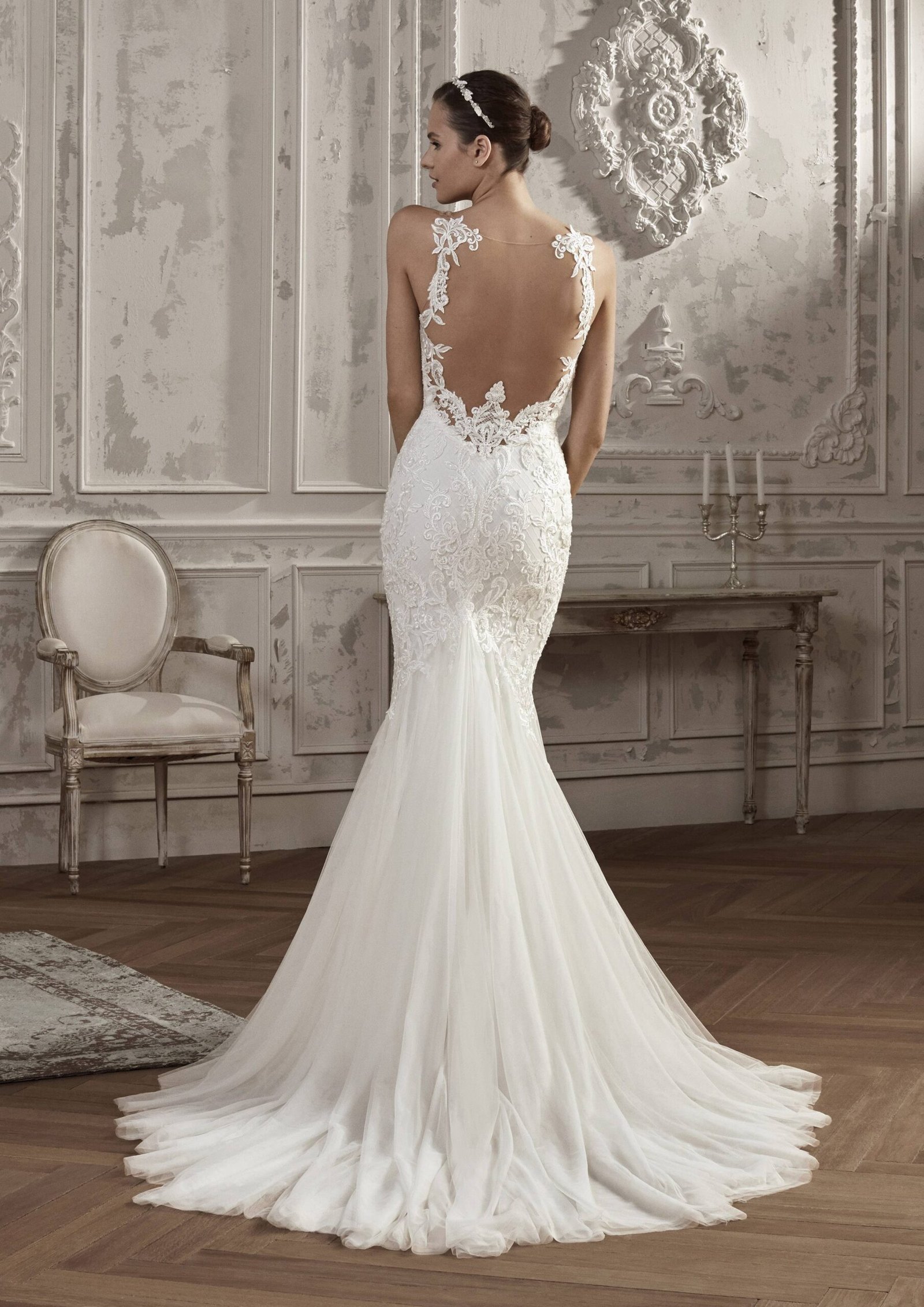 La robe de mariée ALGERIA est une robe de mairée sirène qui épouse à merveille les formes de la mariée. Sa texture en dentelle soyeuse ne laissera pas indifférent les convives pour un mariage réussi. Le décolleté et le dos nu de cette pièce feront frissonner les convives en donnant une allure incroyablement sensuelle à la mariée.
