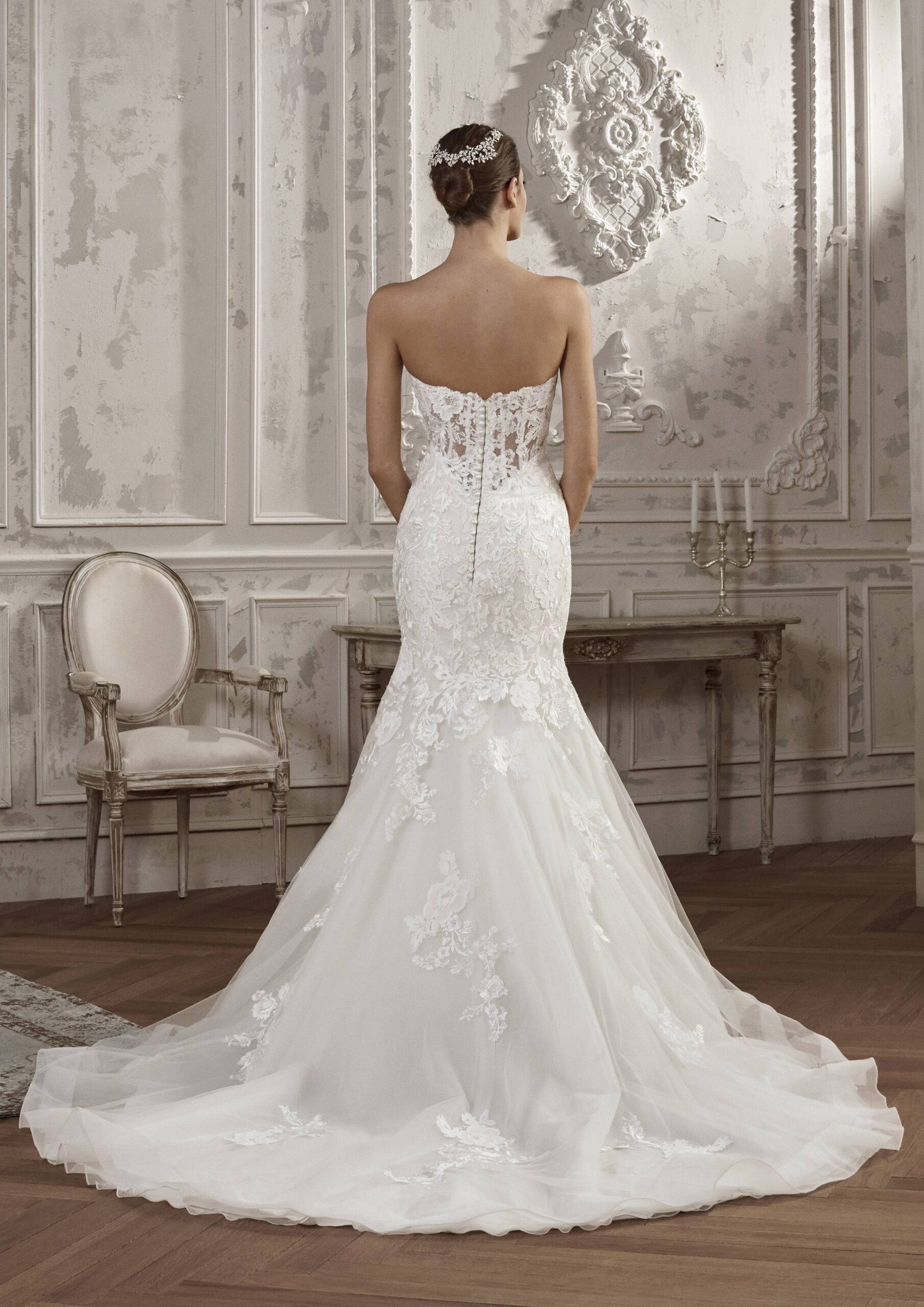 La robe de mariée ALONDRA est une robe de princesse, imprégnée de chantilly qui donnera une allure incroyablement féminine à la mariée. Le volume du drapé en bas de cette pièce, se fond merveilleusement bien avec son bustier décolleté en coeur qui donne un charme incroyable à la mariée. Pour un jour de festivités exceptionnel!