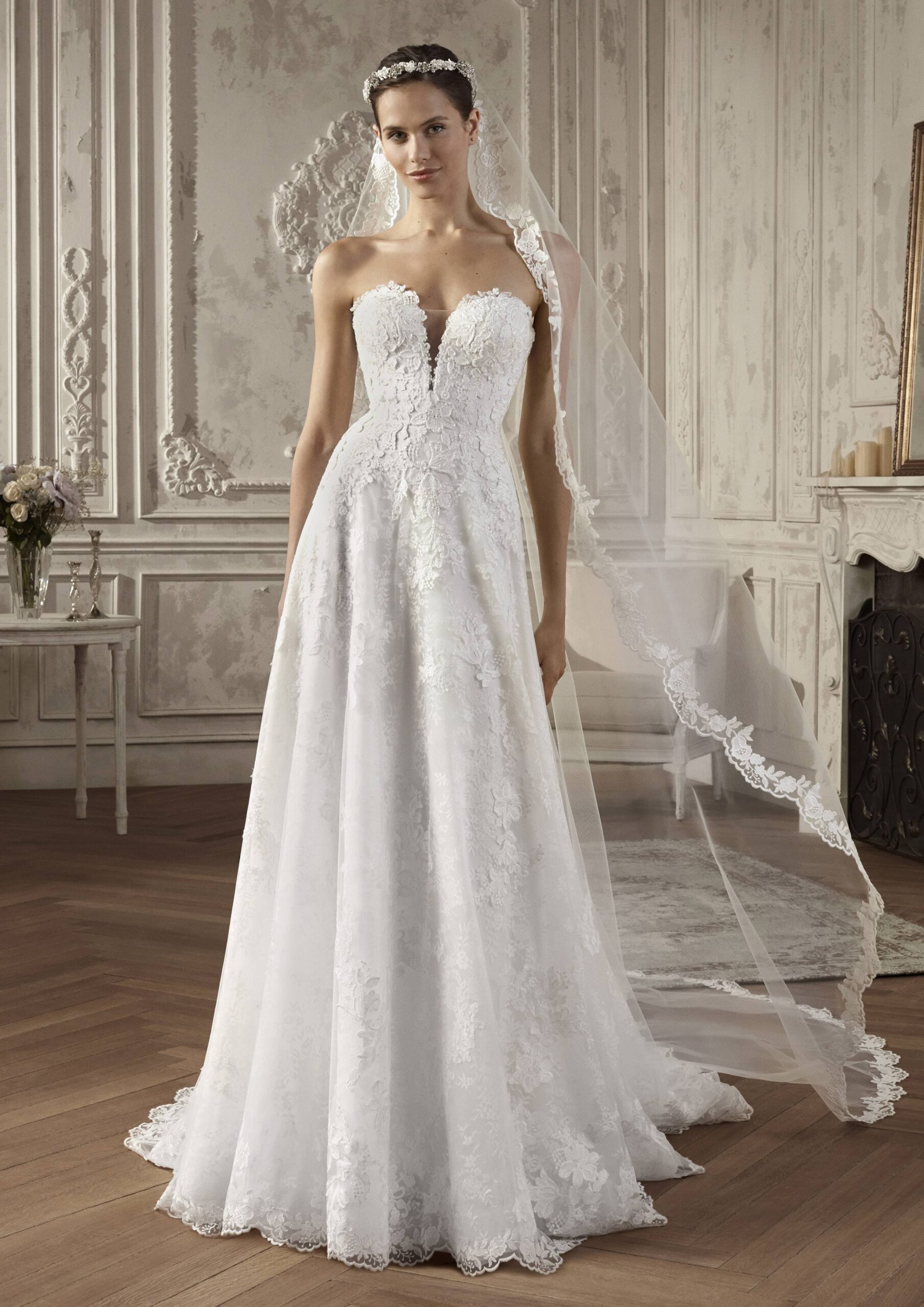 La robe de mariée AMSTERDAM vous plongera dans un monde féérique pour une journée inoubliable. La matière en Chantilly qui s’incruste tout le long de cette robe donne un vrai plus et une sensualité pour mettre en avant la féminité de la mariée. L’élégance est soulignée par le dos légèrement dévoilé qui fond avec la peau avec un bustier décolleté en coeur.