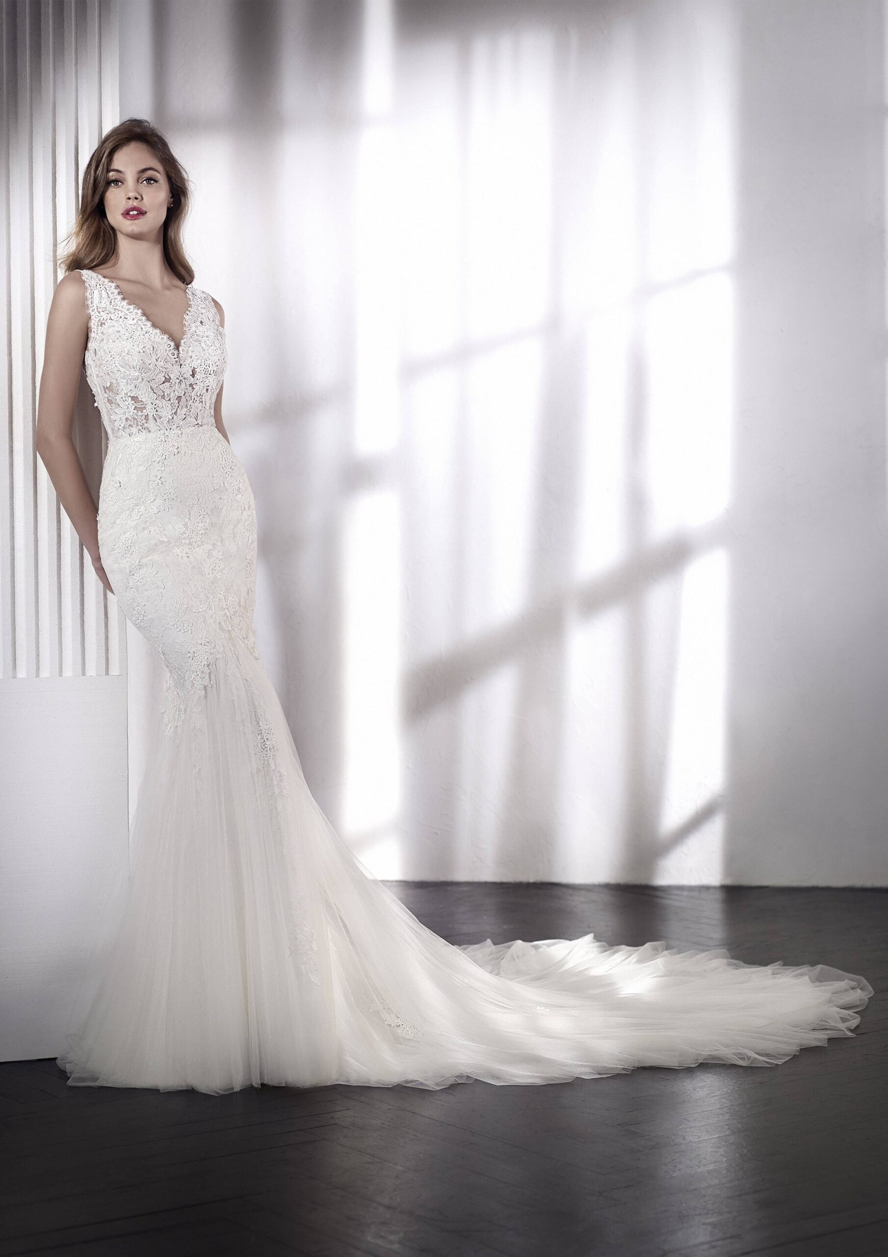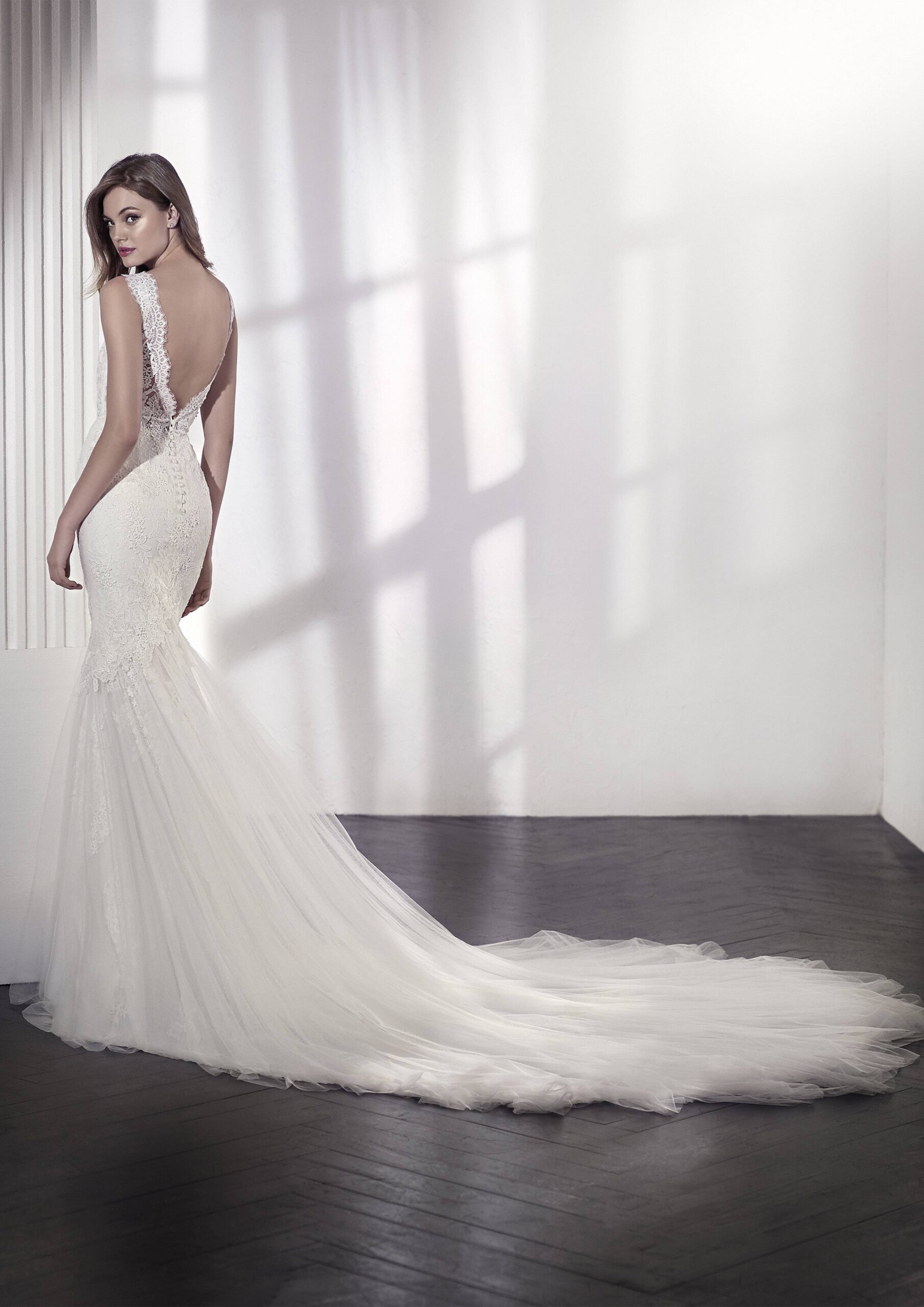 La robe de mariée LENDAS est l’une des robes sirènes les plus recherchées. Elle est la symbolisation parfaite de la féminité, et séduira toutes les femmes en recherche de modernité. Cette robe, avec sa coupe sirène, colle à la peau et accentuera la silhouette de la mariée, avec toute la classe de la dentelle qui accompagne la forme et qui incruste cette pièce d’exception. La traîne de la robe accentue cet effet charmant pour un jour inoubliable.